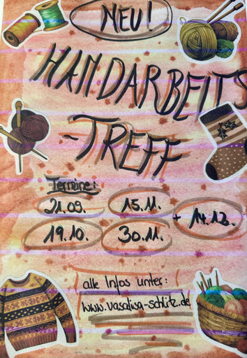 Ab September gibt es im Häuschen Vasalisa einen Handarbeitstreff. Jede/r ist willkommen - egal ob Anfänger/in oder Fortgeschrittene/r.